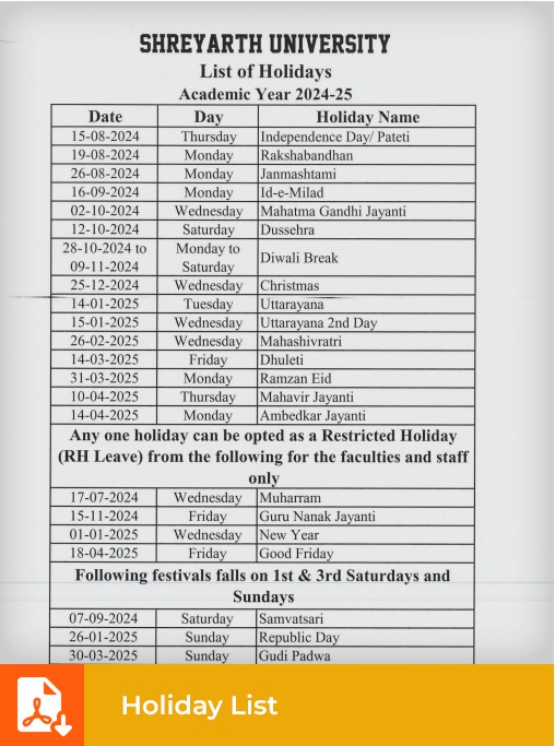 Academic Calendar & Holiday List Academic Year 2024-25